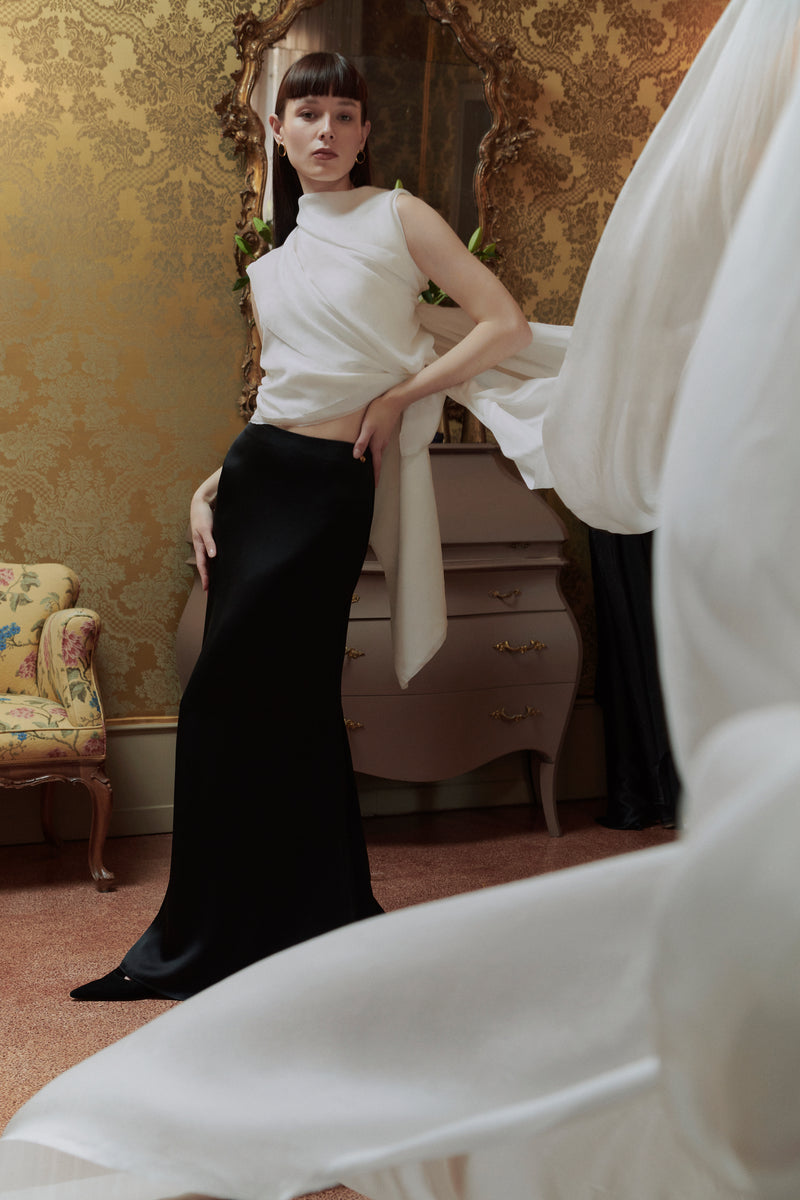 Each piece is hand-sewn using time-honoured techniques passed down from the Atelier’s couturier grandfather, Dominic Gallello — a legacy of true craftsmanship.